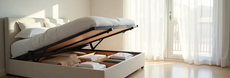 Le lit coffre exploite le volume vertical sous le sommier pour créer jusqu’à 500 litres de rangement invisible, libérant ainsi 2 à 3 m² de surface au sol. Cette solution combine trois avantages décisifs : réduction de l’encombrement visuel, diversité stylistique adaptable à toute identité décorative, et mécanismes de levage permettant un accès ergonomique au stockage. Le choix optimal repose sur l’analyse de critères techniques souvent occultés et la projection des besoins sur 5 à 10 ans.